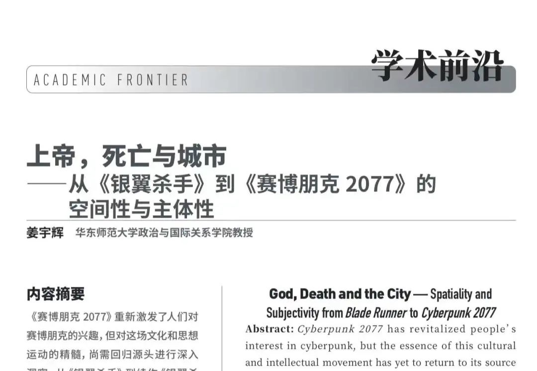 学术发表|姜宇辉:上帝,死亡与城市——从《银翼杀手》到《赛博朋克 2077》的空间性与主体性