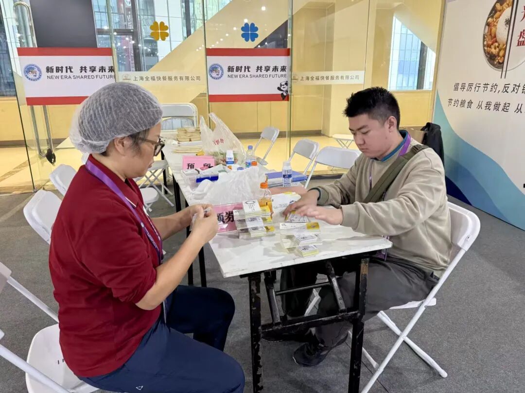 同时,他参与馆内工作人员用餐管理。他与组内志愿者们协作,每日收集就餐需求并按量发放餐券,在场馆内处理临时就餐调整,确保每日近千人次用餐有序进行。从需求统计、环境检查到餐券清点,每个环节一丝不苟,只为让工作人员在忙碌中吃上热饭、安心用餐。