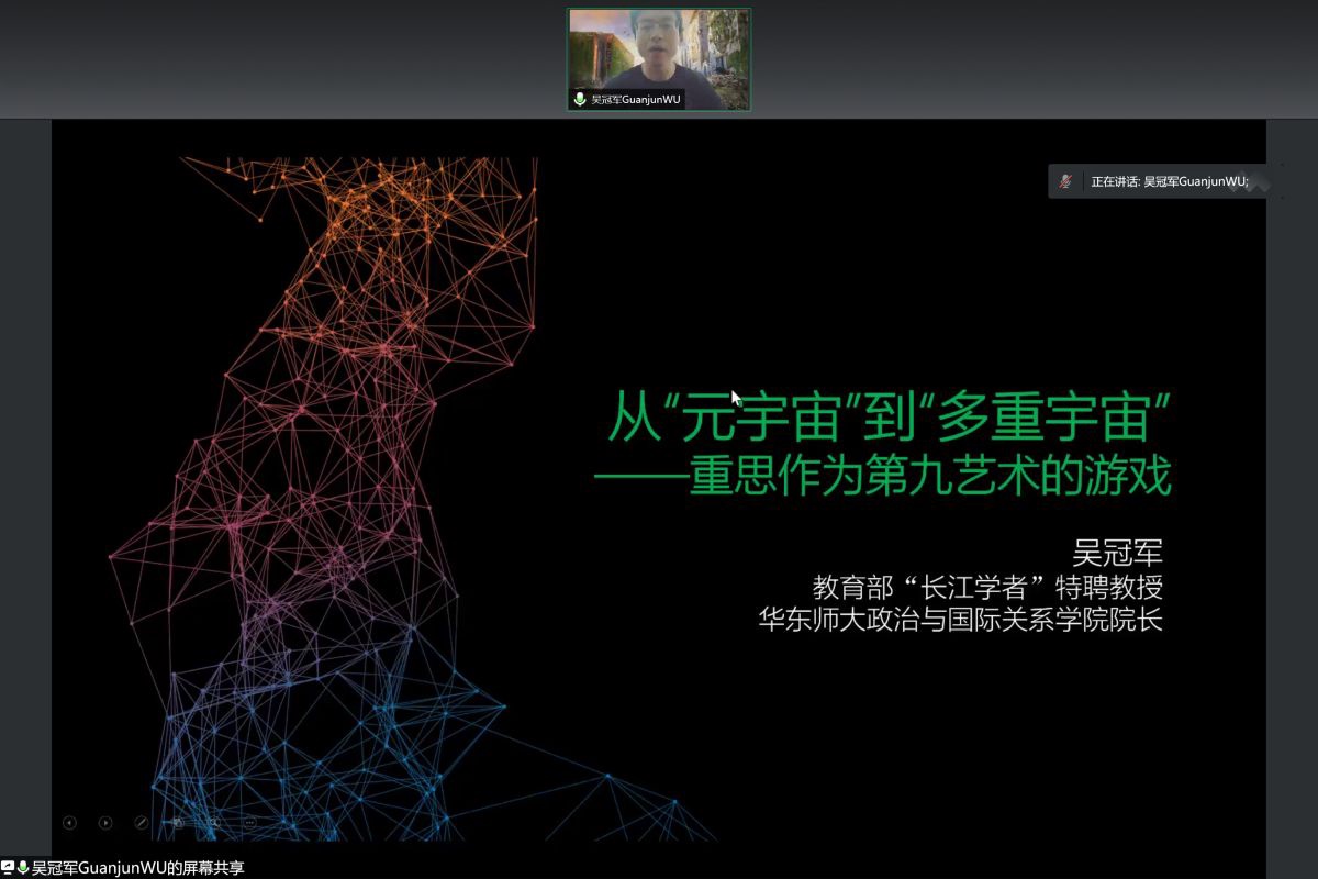 在这样的氛围下,4月30日,游戏的资深玩家、政治哲学教授、色中色 院长吴冠军登场,在华南师范大学邀请下,以元宇宙为奇点,以“重思作为第九艺术的游戏”为题,思考元宇宙带来的新焦虑,他提出以玩、探索、创造的形式来应对变化中的世界。