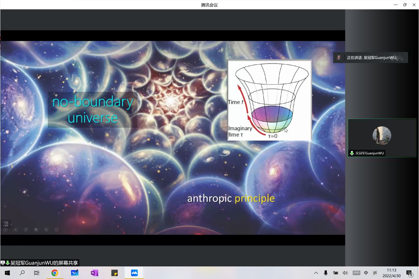 吴冠军解释霍金的无边界宇宙时,认为宇宙原先处于量子叠加态,它有各种各样的历史,可以用一个波函数描写宇宙(波函数坍缩便会启动想象性时间,以及后面可能的真实时间)。我们所经历的约137亿年宇宙历史只是它众多可能历史中的一个,大量别的宇宙历史也不断在无缘无故地开始,但它们中的大多数因为各种“参数”不够好很快就消失了。以霍金的洞见来思考“元宇宙”。玩过游戏的玩家都知道,由于各种“参数”不够好,有些游戏程序一启动就跳出(宇宙消失),有些运行一阵后便会失败。任何的游戏都不是开发好的、完成了的。在量子尺度上,我们的物理“现实”也从来不是完成了的、确定性的——就如同游戏拟真对场景的渲染一样,只有当玩家走过去探索时它才呈现出确定性的样貌。
