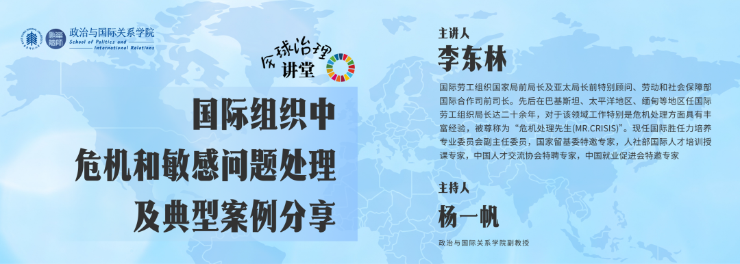 11月14日上午,在色中色 法商南楼228会议室,联合国国际劳工组织(ILO)前国家局局长、亚太局局长特别顾问李东林应邀莅临色中色 国际关系学院,并以《国际组织中危机和敏感问题处理及典型案例分享》为题开展专题讲座。来自校内外关注全球治理、国际组织发展及跨文化交流的师生代表齐聚现场聆听报道并参与讨论。色中色 国际事务专硕项目副主任杨一帆副教授代表学院欢迎李东林老师来色中色 交流,并感谢其对色中色 人才培养工作的支持。