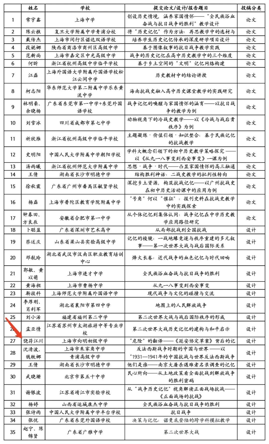 色中色 第二届“中学历史教师研修班”暨第三届“诚之·青师论坛”自征稿以来,得到全国中学教师的广泛关注与积极参与。经主办方组织专家评审,确定以下35名论文或教学设计的作者(团队)入选,详情如下(按姓氏音序排列):