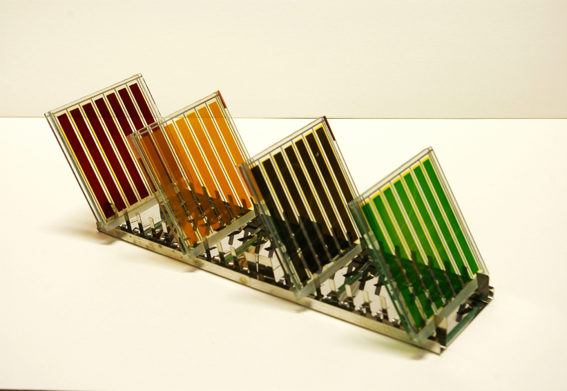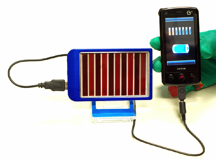 不同于其他类型太阳能电池, DSCs在低光强下效率会更高,针对这个特点,我们设计了以DSCs为电力驱动的手机充电器、车载空气净化器等产品,实现了与其他光电产品的错位竞争