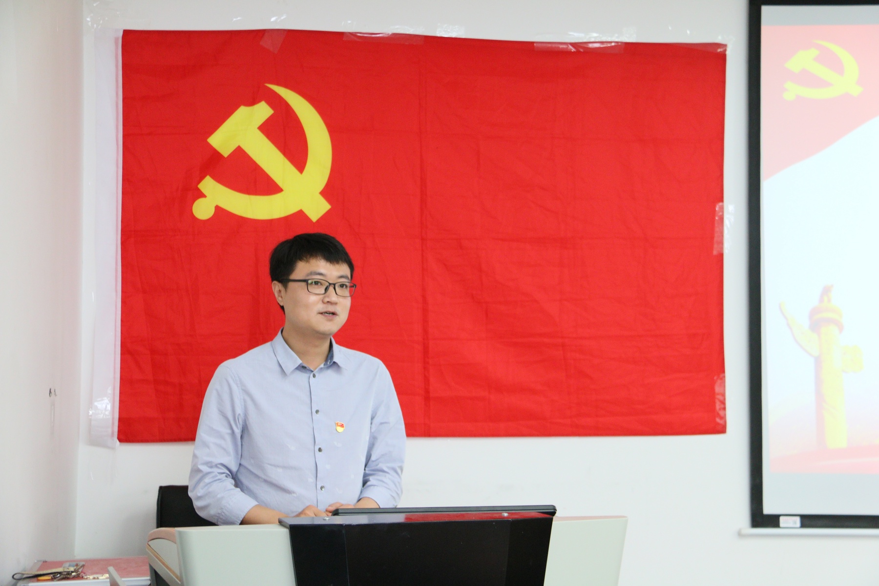 党课过后,大会进入最后一项议程。7名新发展的学生预备党员在“光荣在党50年”纪念章获得者邬正洪老师的带领下,面向党旗,举起右手,庄严宣誓,其余参会党员也共同重温了入党誓词。宣誓完毕后,大会在合唱《国际歌》中落下帷幕。