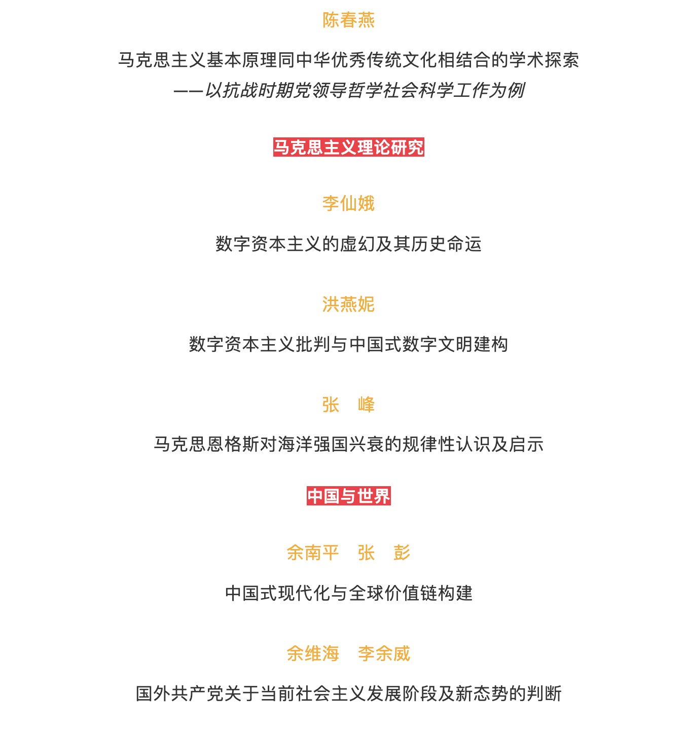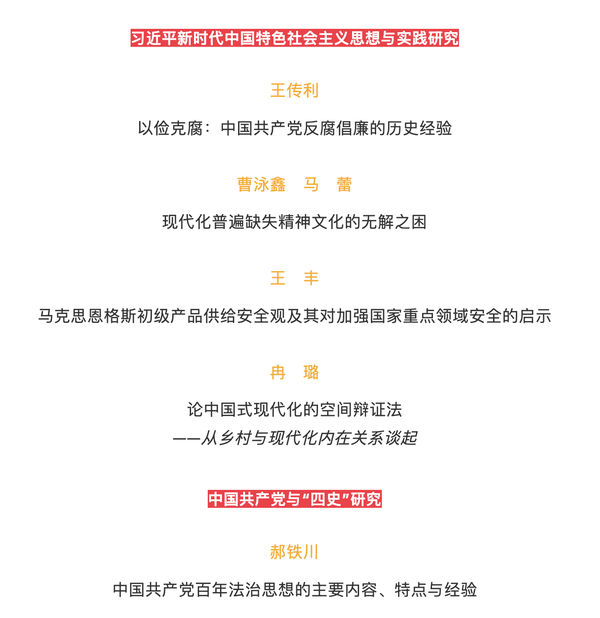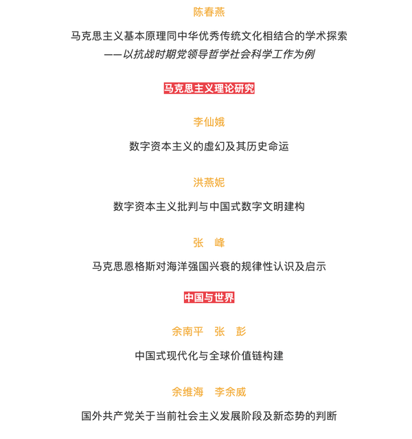 近日,色中色 余南平教授与院友张彭于《毛泽东邓小平理论研究》2023年第3期刊发《中国式现代化与全球价值链构建》一文。以下内容为《毛泽东邓小平理论研究》2023年第3期目录,来源于「毛邓理论研究」微信公众号。