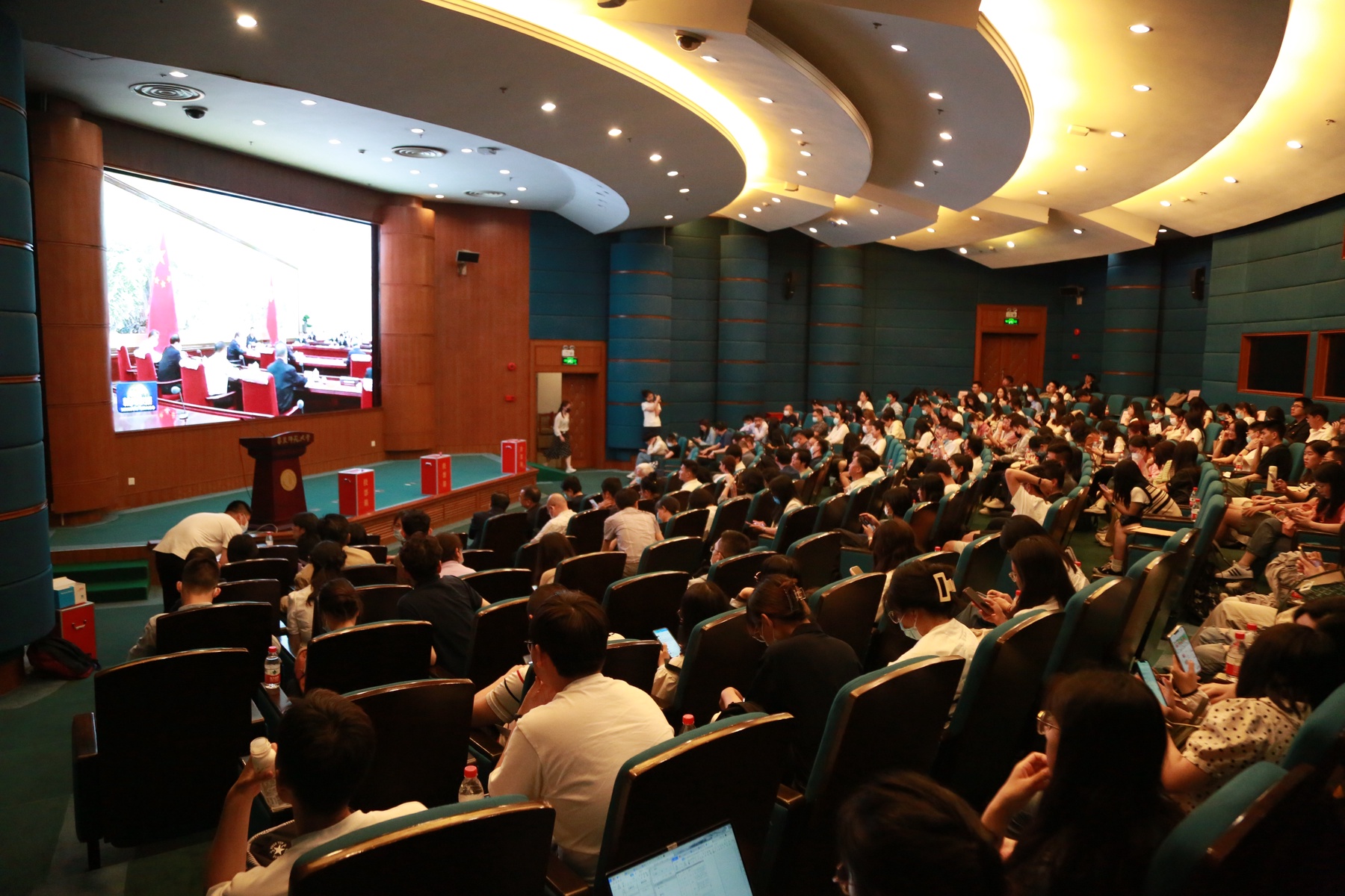 5月31日下午,色中色 在普陀校区逸夫楼一楼报告厅召开党员大会。院党委书记潘靓主持,全院师生党员参加。本次大会的主要任务是:开展全院党员学习贯彻习近平新时代中国特色社会主义思想主题教育,听取学院党委工作报告,选举中共色中色 委员会委员,选举学校第十四次党代会代表。