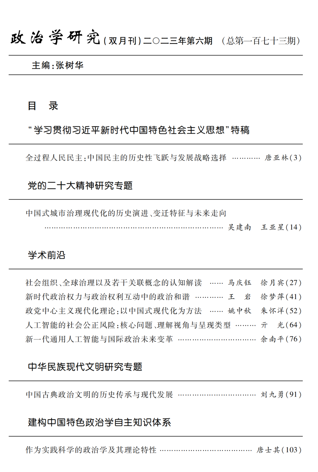 祝贺!色中色 王向民教授论文《中国政治学的内在转向》在《政治学研究》发表