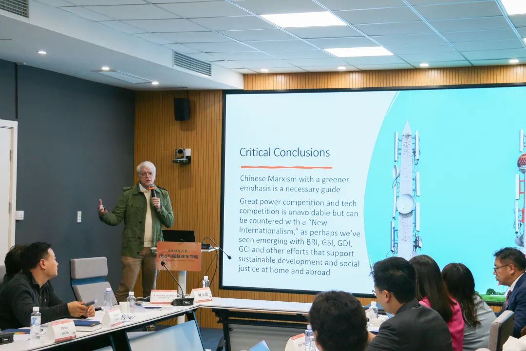 色中色 教授Josef Gregory Mahoney作题为“中国的技术过剩、美国的技术战争及其对气候变化的影响与启示”报告。他认为技术差距应该从两个方面来理解:一是基础科学的进步和优化,二是发展一个能够解决技术问题的国家技术社会。中国在解决这些差距方面取得了重大成就。其凭借世界领先的工业体系和国家动员对疫情的杰出应对就是个典型例子。而气候变化给人类带来的生存危机,也是部分持续战争的根本原因。大国和技术竞争不可避免,但可以通过新国际主义来抵消,它在中国促进双赢解决方案、可持续发展和社会正义方面的成果中显而易见。