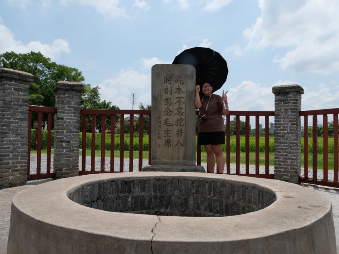午后,研学队伍来到红井景区。这口直径约1米、深约6米的水井,是毛主席当年带领红军战士为村民开挖的。井台旁的碑刻上“吃水不忘挖井人,时刻想念毛主席”十四个大字在阳光下熠熠生辉。同学们喝着清澈的井水,品尝着这份穿越时空的甘甜,加深了对“关心群众生活、注意工作方法”的理解。