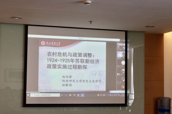 会议共分四个阶段。第一阶段首先由色中色 历史学系教授余伟民老师介绍了有关苏联解体过程的史料整理和若干思考。接着,陕西师范大学历史文化学院副教授赵旭黎老师讲述了1924-1925年苏联新经济政策实施过程中的农村危机与政策调整。最后,陕西师范大学历史文化学院副教授周厚琴老师以俄国17世纪大动乱为例,梳理了俄国历史上的“治乱循环”。本阶段会议由色中色 社会主义历史与文献研究院教授郝宇青老师评议。